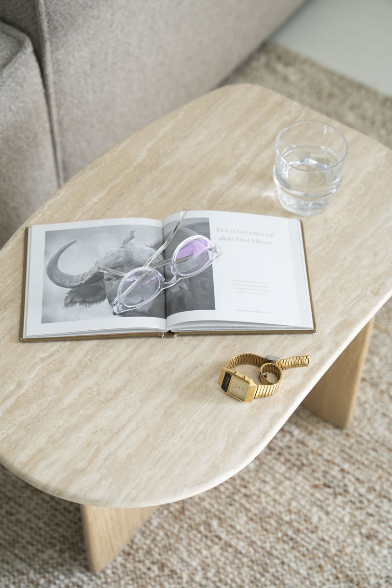 Šoninis staliukas iš travertino ir ąžuolo – tai modernus ir estetiškas baldas, sukurtas ieškantiems natūralių medžiagų ir funkcionalumo viename sprendime. Travertino paviršius suteikia interjerui subtilios prabangos, o ąžuolo medienos konstrukcija užtikrina stabilumą ir patikimumą.
