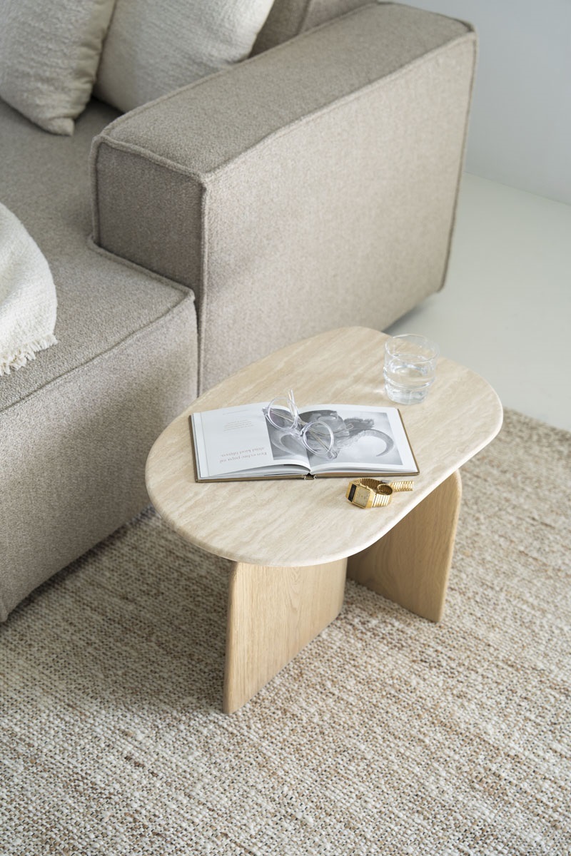 Šoninis staliukas iš travertino ir ąžuolo – natūrali elegancija jūsų interjere