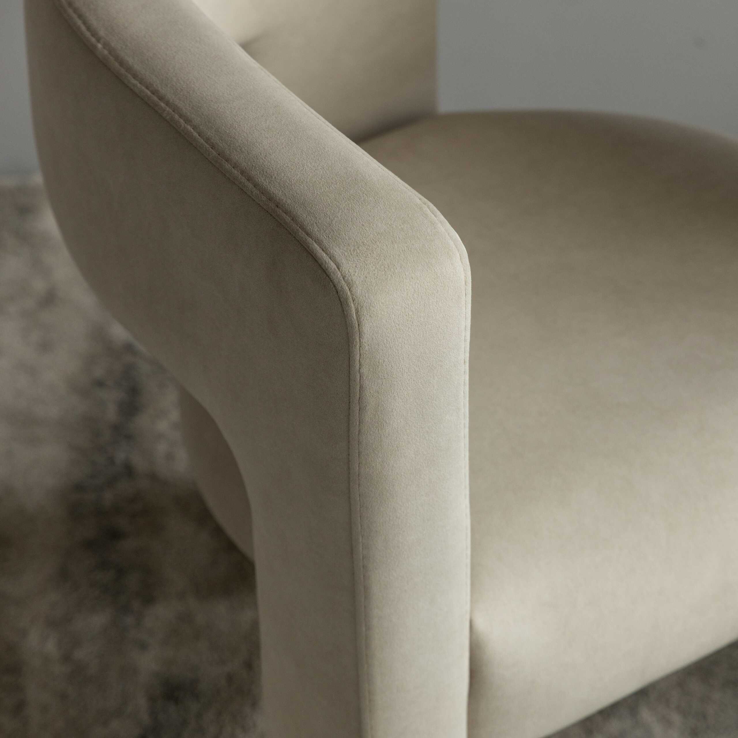 Minimalistinis siluetas leidžia foteliui atrodyti lengvai ir estetiškai, todėl jis puikiai dera tiek erdviose svetainėse, tiek mažesnėse patalpose.