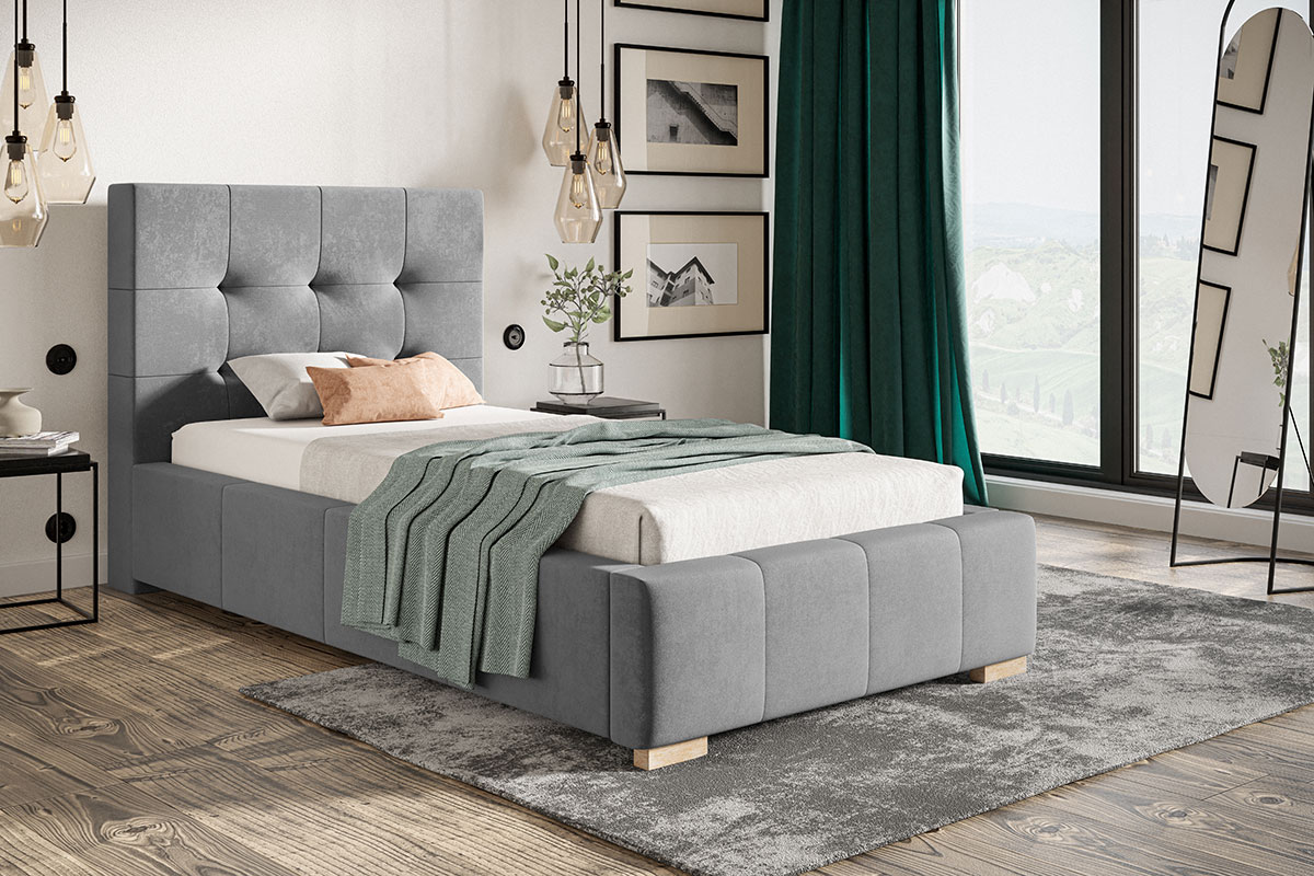 Miegamojo lova Praha 90×200 yra individualiai gaminamas baldas. Gali būti keičiami išmatavimai bei audinys. Medžiagas galite pasirinkti gyvai atvykus į ekspoziciją arba el.paštu, telefonu.