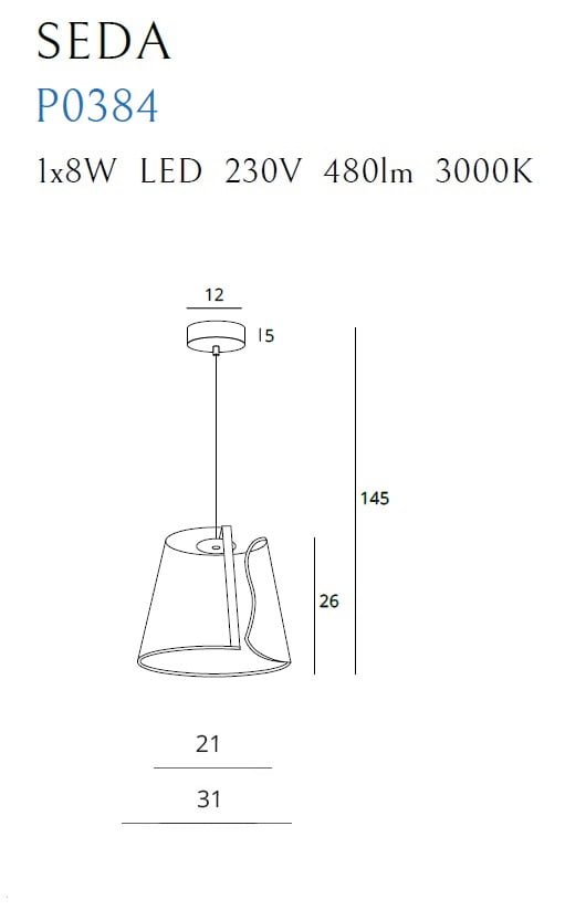 Pakabinamas šviestuvas SEDA P0384 yra MaxLight gamintojo prekė. Prekės paruošimas išsiuntimui gali užtrukti iki 2 d.d.