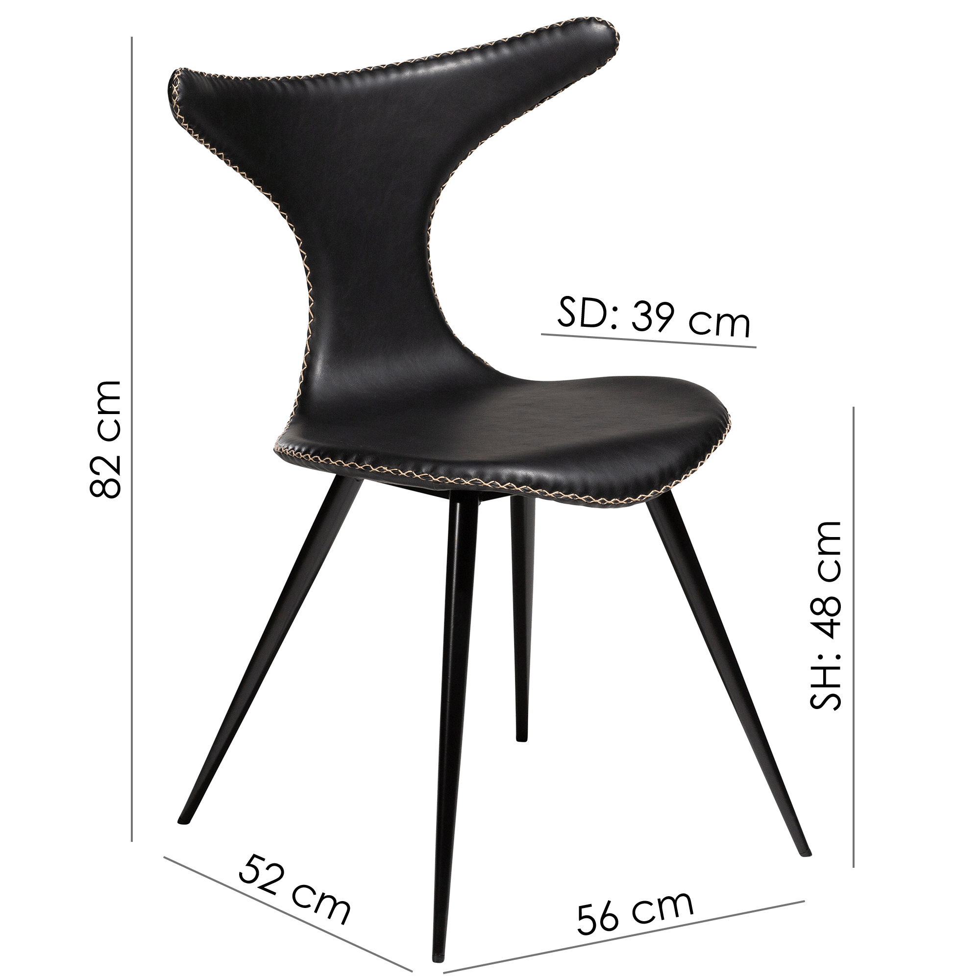 Valgomojo kėdė DOLPHIN yra Danijos gamintojo Dan-Form prekė. Šio gamintojo baldai atspindi dabartines dizaino tendencijas. Kėdės dizainą sukūrė Bjarke Nielsen. Kėdė pagaminta iš dirbtines odos bei plieno