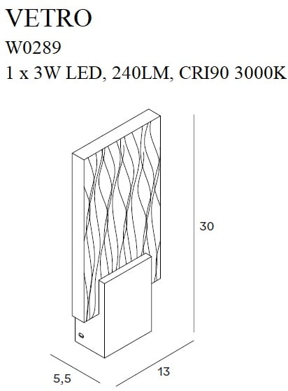 Sieninis šviestuvas VETRO W0289 yra MaxLight gamintojo prekė. Prekės paruošimas išsiuntimui gali užtrukti iki 2 d.d.