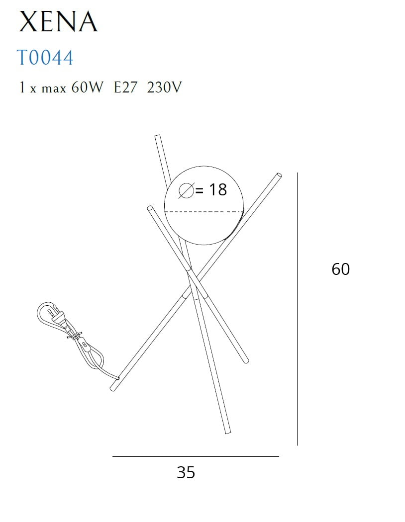 Stalinis šviestuvas XENA T0044 yra MaxLight gamintojo prekė. Prekės paruošimas išsiuntimui gali užtrukti iki 2 d.d.